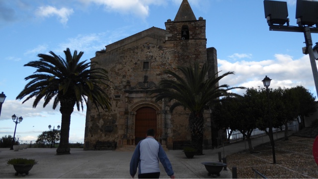 The next day the South Koreans, though in a next room to us were up at 05:00hrs, so most people were stirring soon there after. We were out the door by 06:30 hrs and off into the dark, but no headlamp as Alan said he could see the road. We passed the Koreans having a picnic on the way. In Alcuescar we stayed in the monastery but got there long before it was open. So Alan went off to find a cash machine to get money. The monastery though basic had plenty of toilets and showers for every one. All unisex. They did not have Wifi so we went off to a bar for that and of course Alan's isotonic drink. The monastery offered an evening meal after a tour and talk as well as Mass. The tour was all in Spanish and though Leonard (Dutch) made feeble attempts at translation, was mildly boring. It was given with great enthusiasm by a Tanzanian Monk though. After the Mass we were to receive a Pilgrim's Blessing. Alan misunderstood the Spanish in the Service and thought we had been given it at the end. So when nearly every one left he stood up to sing the Pilgrim's Hymn only to realise as he got to the third verse that he was holding up the proceedings! The Hospitalero did thank him later for the good singing!